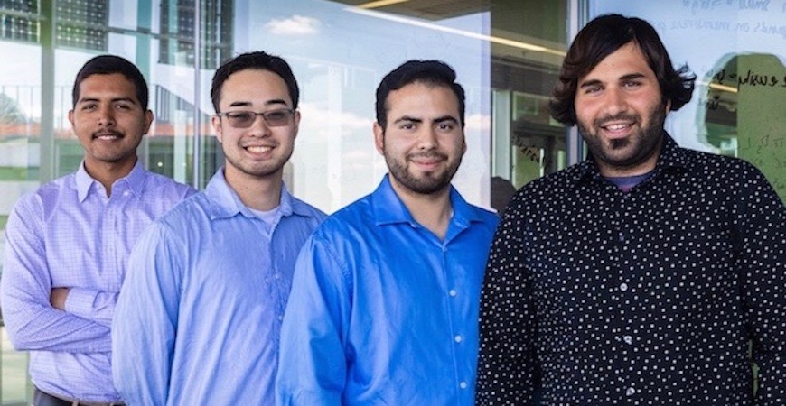 Members of the JPL team, mechanical engineering seniors David Sagastume, Christopher Toy, Luis Soto and Moataz Dahabra