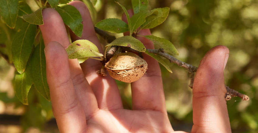 Between the rows of almond trees are plantings of rosemary, butterfly bush, deer grass and lavender. They improve soil health by maximizing water retention and allow chickens and sheep to graze the orchard and provide natural fertilizer.